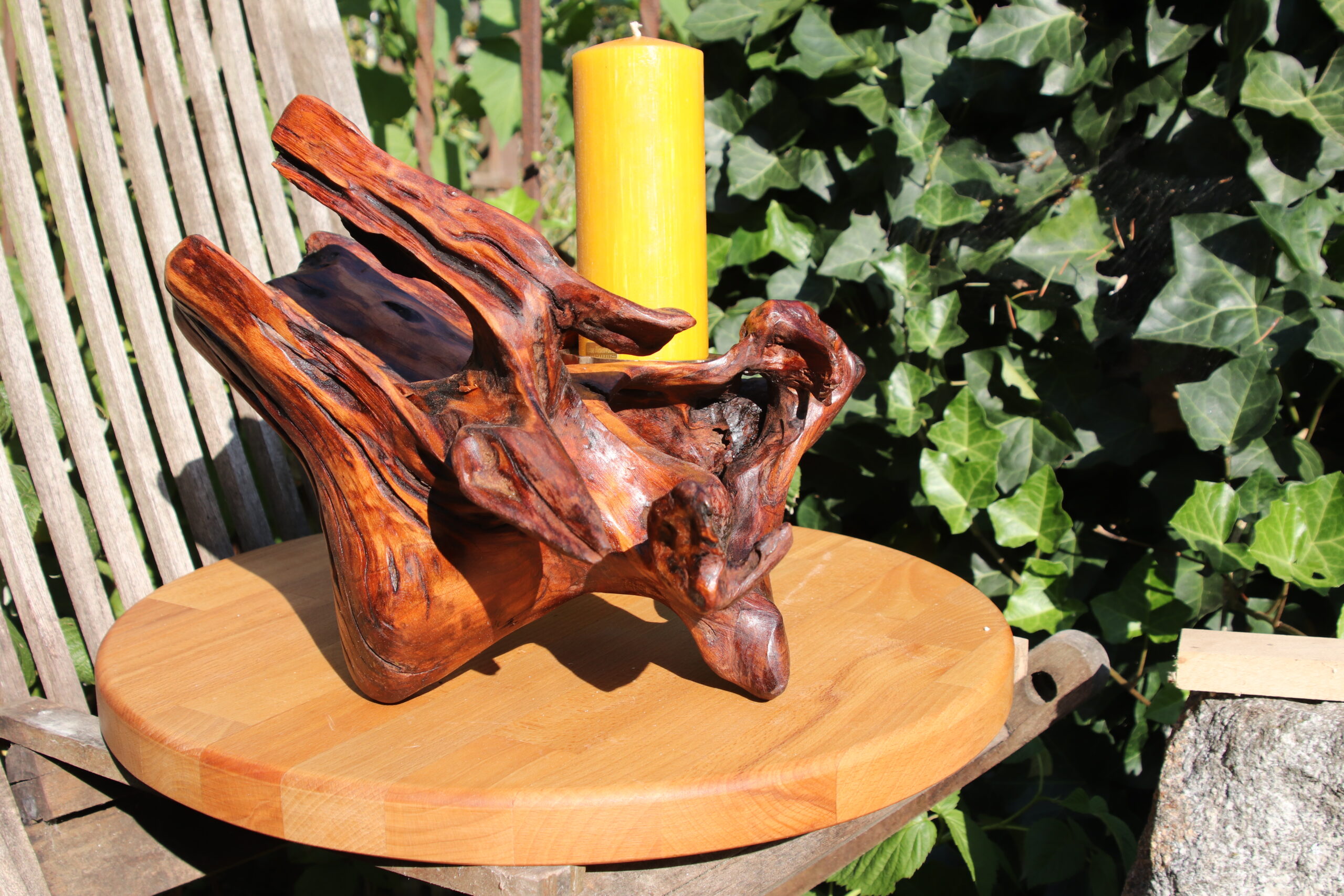 Der Rohling erforderte einige Phantasie. Denn dieser Wurzelstock einer alten Pflaume sah zunächst kaum wertig oder vielversprechend aus.